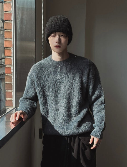 [質感升級!] 釘珠馬海毛圓領冷衫|3色入