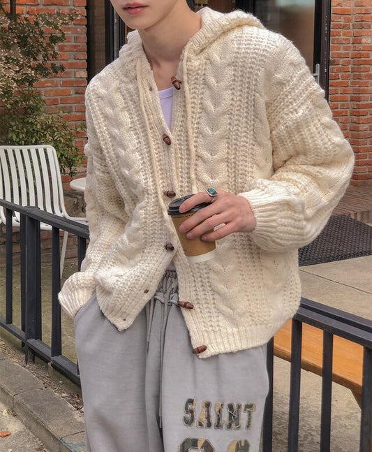 冬日感MAX!牛角扣麻花開胸針織外套|3色入