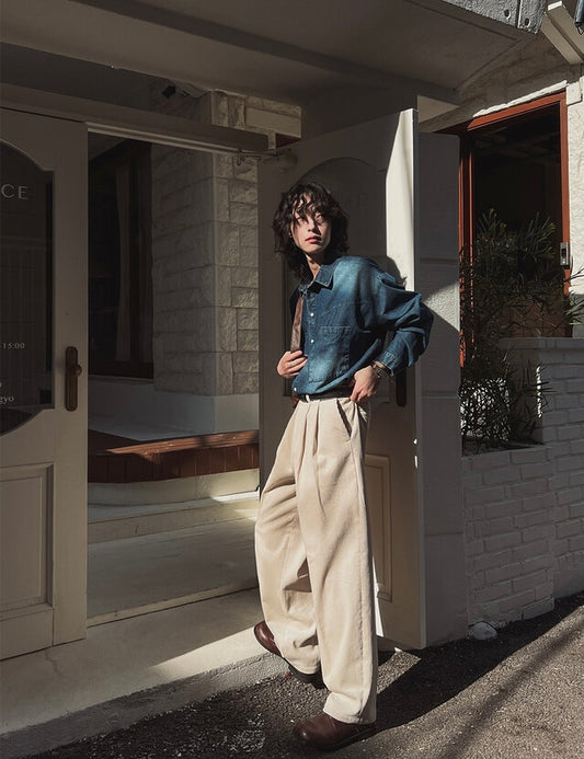 寬鬆復古直腳牛仔褲(Brush Blue)