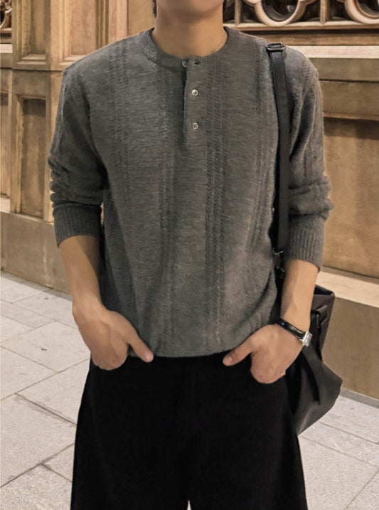 PREMIUM👑細麻花亨利領針織衫|4色入