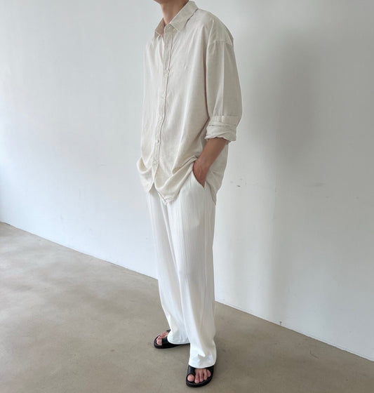 [親膚面料]夏季輕薄彈性壓紋長褲