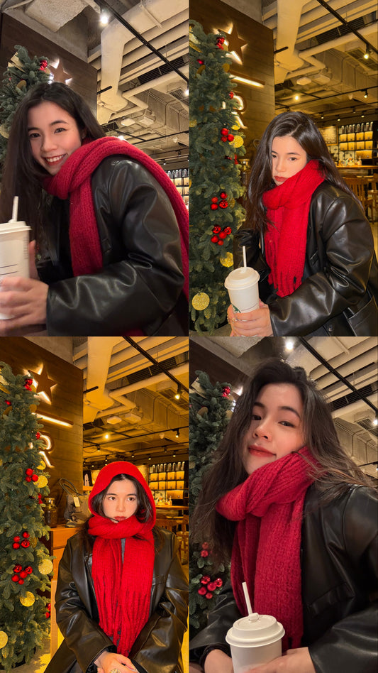 [推薦飾品!]節日感羊絨純色流蘇頸巾