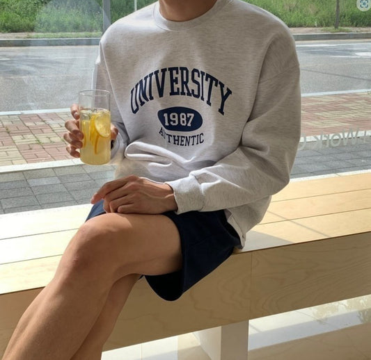 [校園感!]University 1987 圓領印花衛衣
