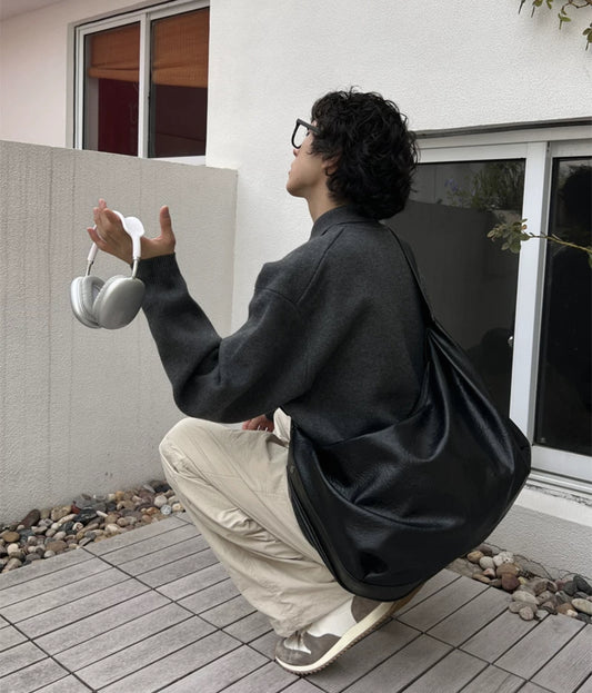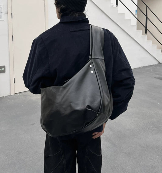[型男必備] 質感裂紋軟皮革斜孭袋