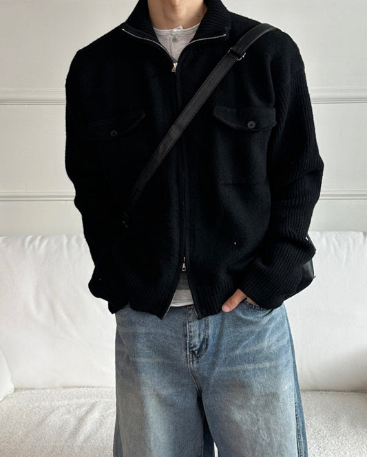Zip up🧶太陽翻領開胸針織外套|2色入