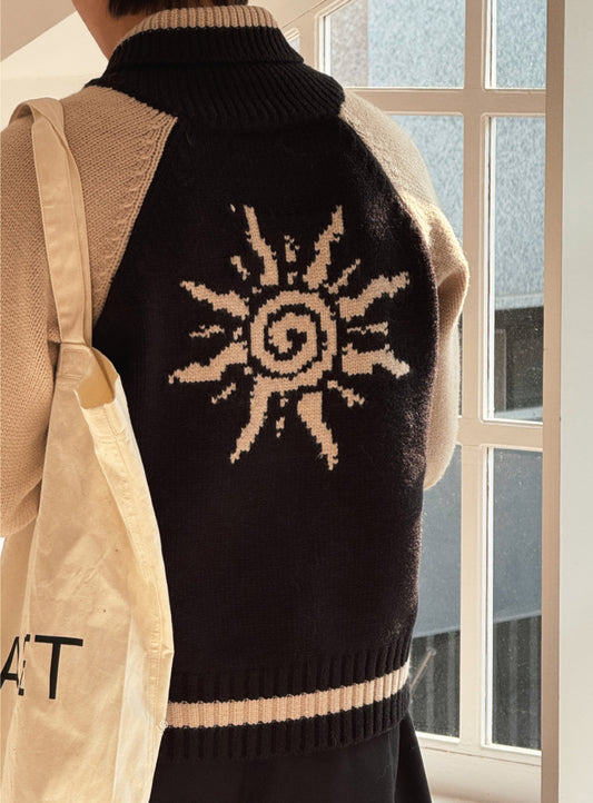 Zip up🧶太陽翻領開胸針織外套|2色入