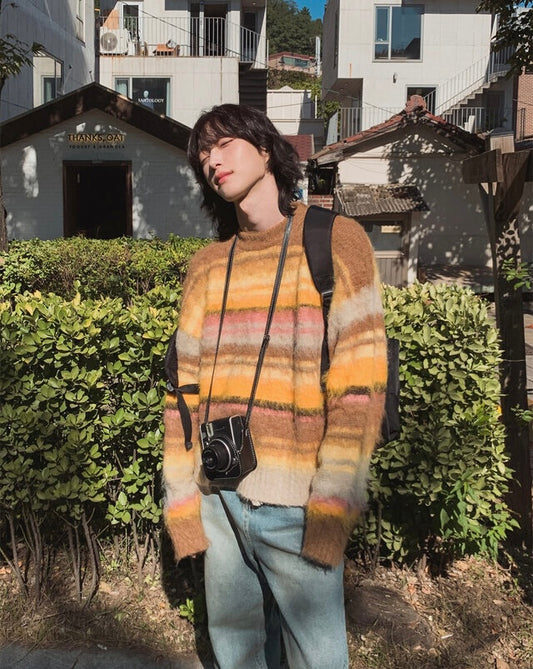 🍂秋感拼色橫間馬海毛針織衫|2色入