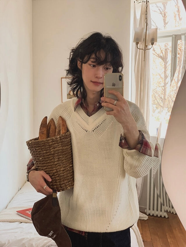 男友感Max!混色羊毛混紡寬鬆針織衫|4色入