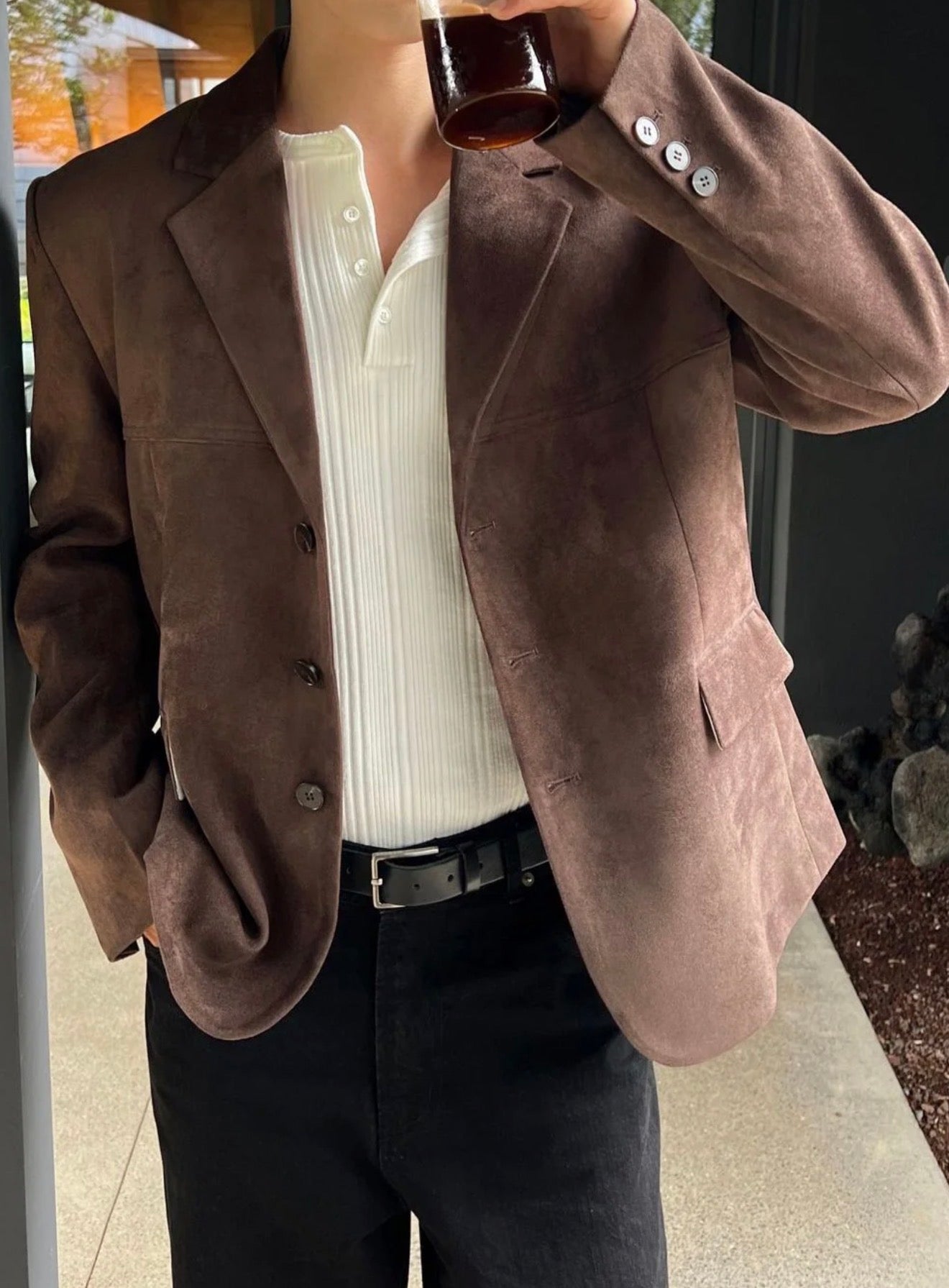 成熟風💼韓系麂皮西裝外套|2色入