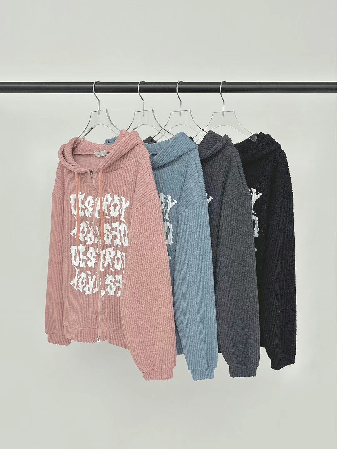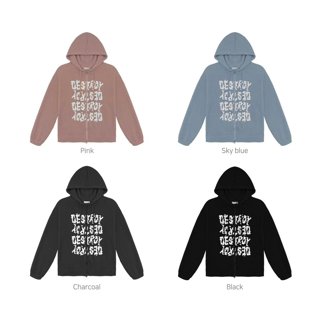 [🇰🇷連線]Destory印花針織薄款拉鏈外套