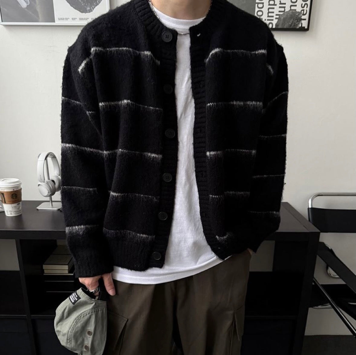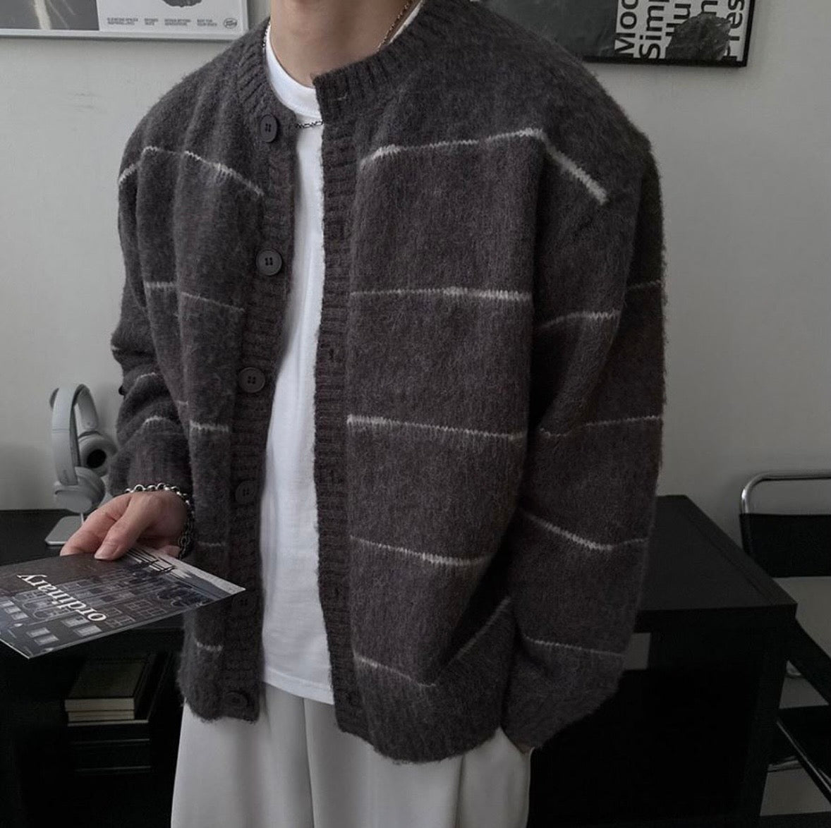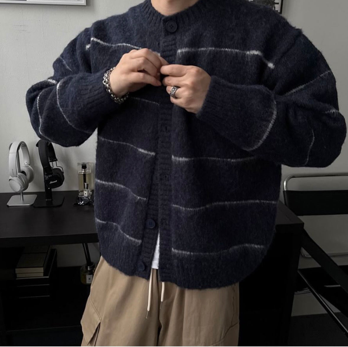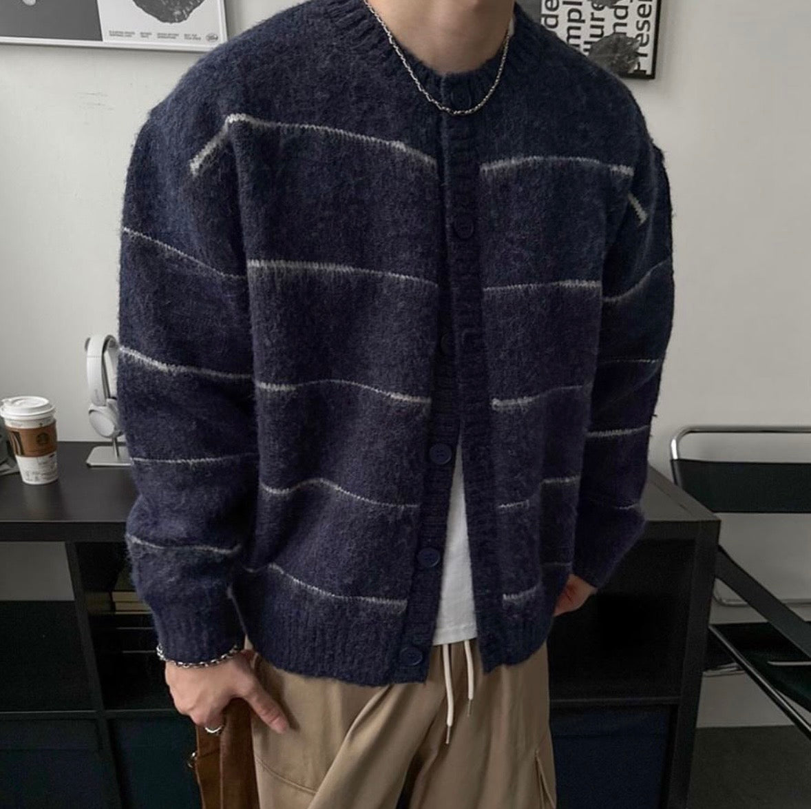 橫間鈕扣柔軟馬海毛冷衫