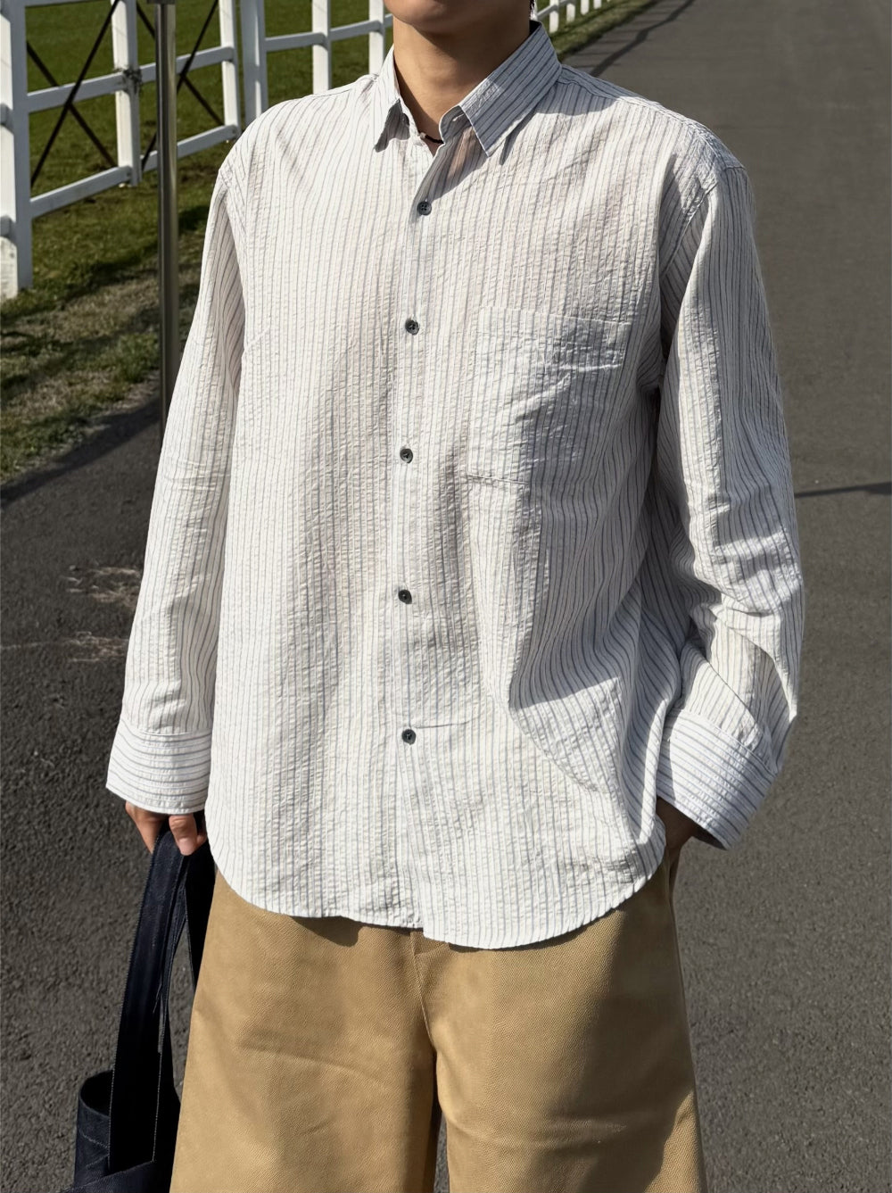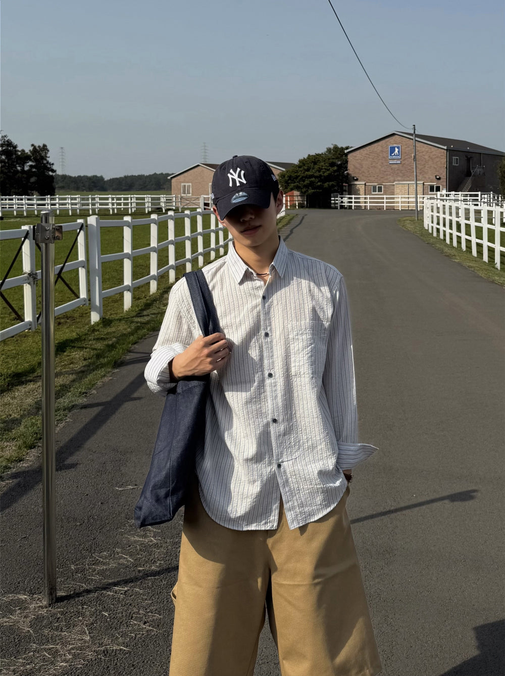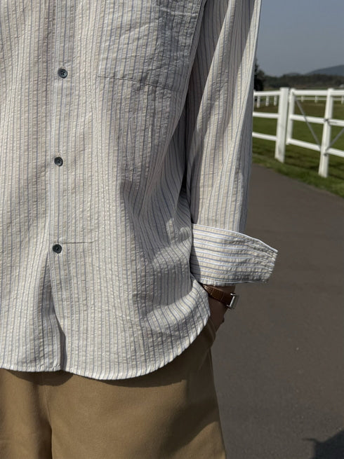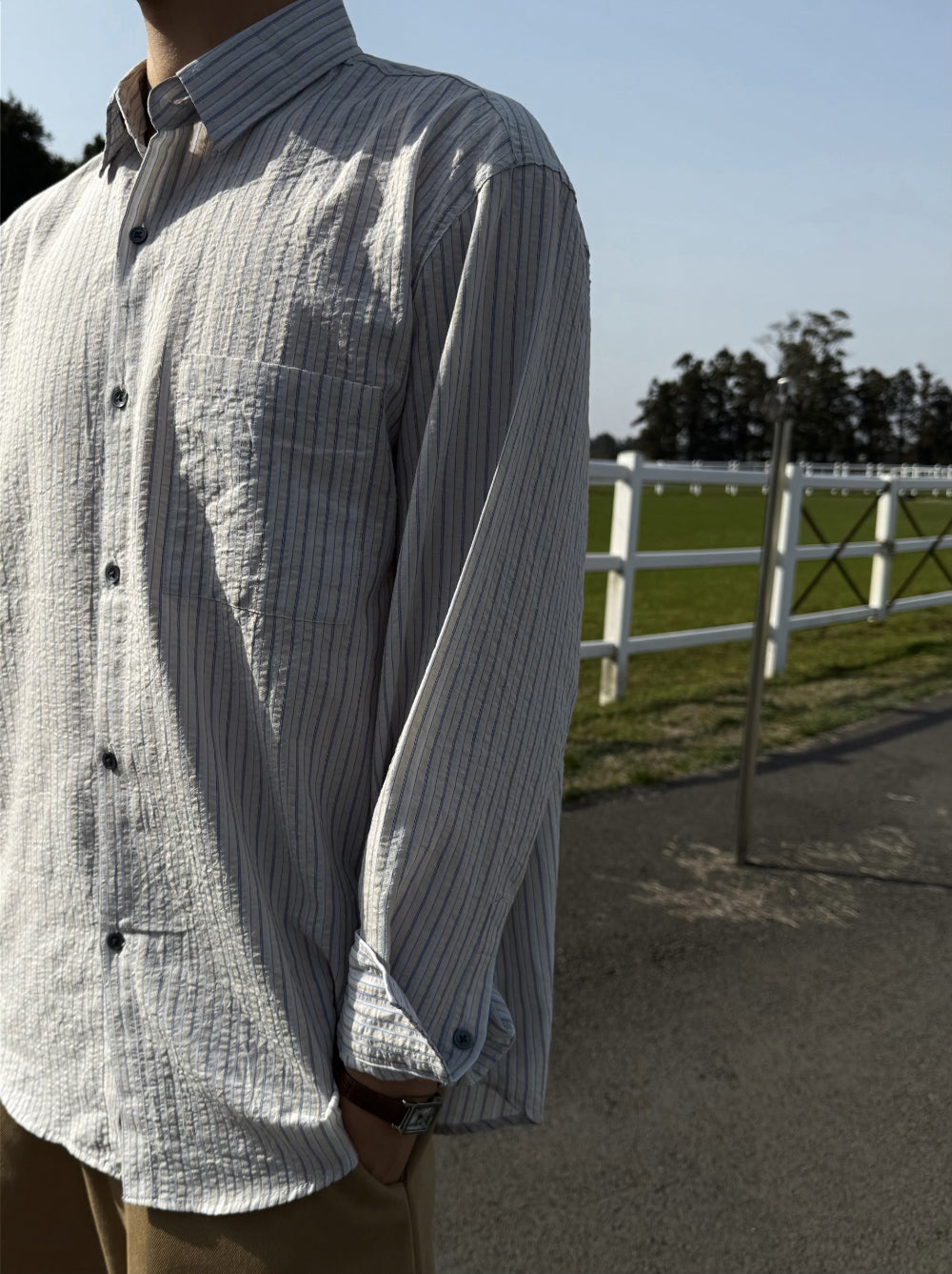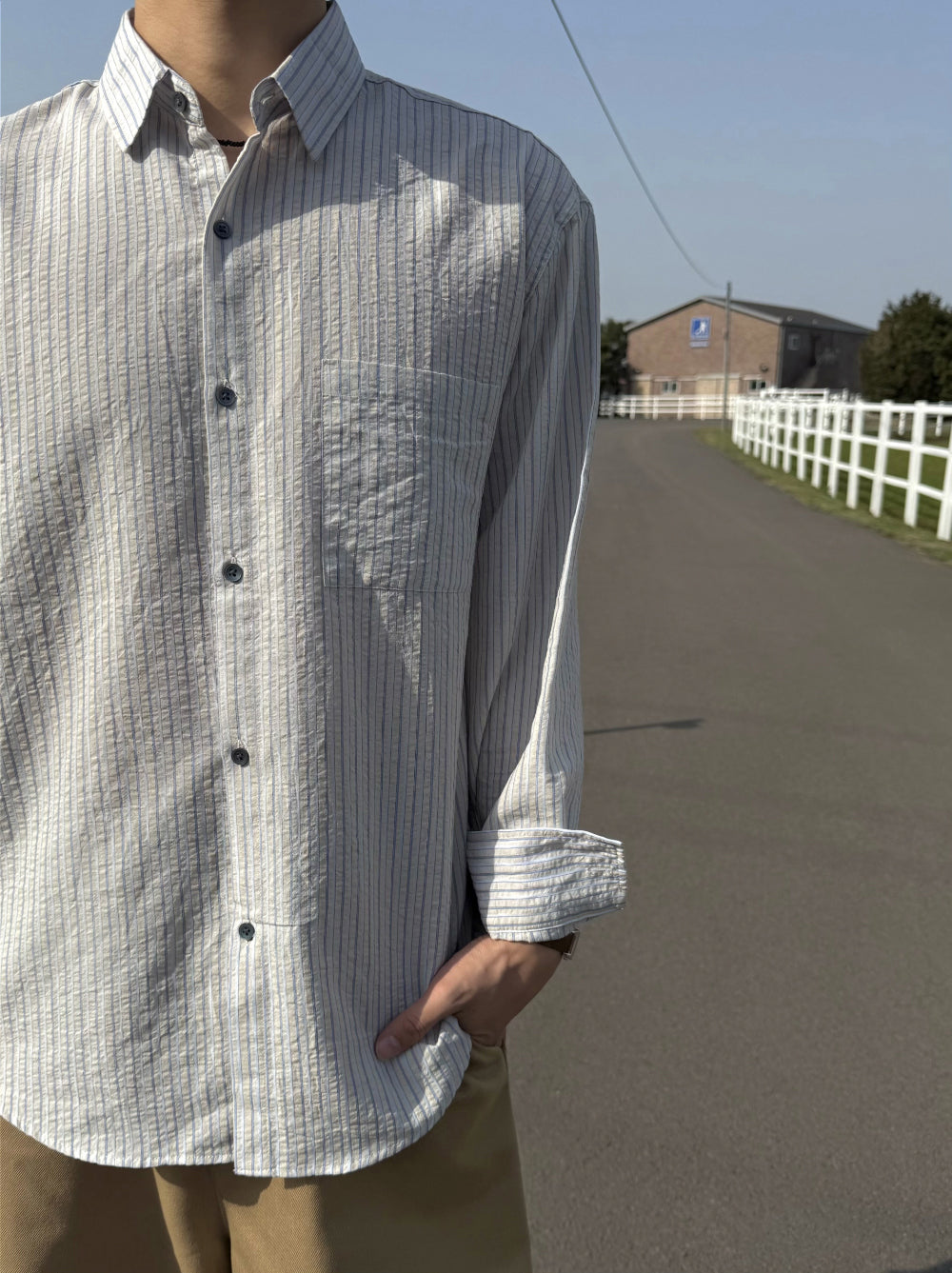 四季皆可穿!泡泡棉短款條紋恤衫|3色入