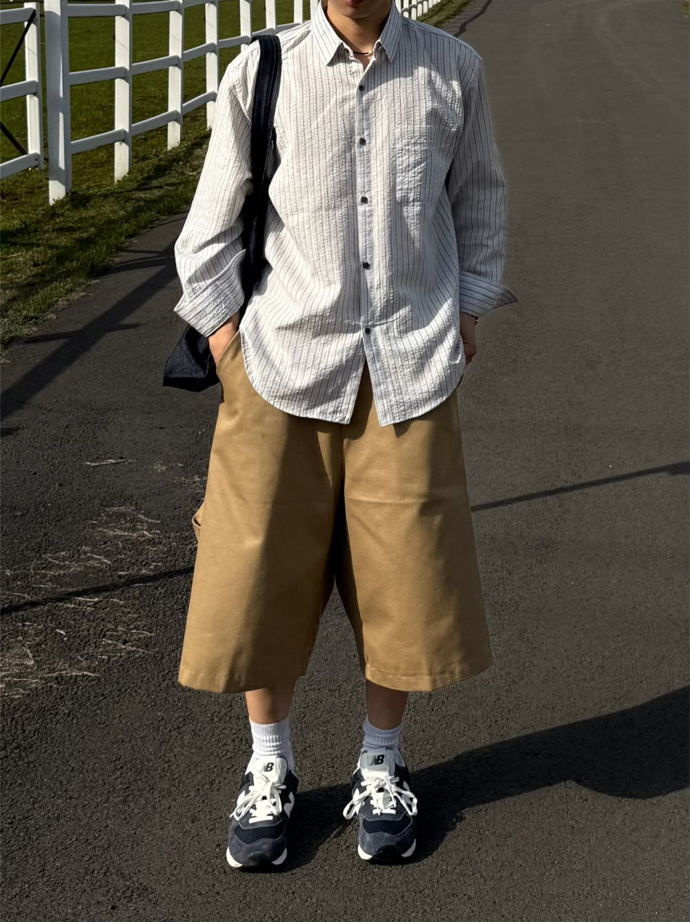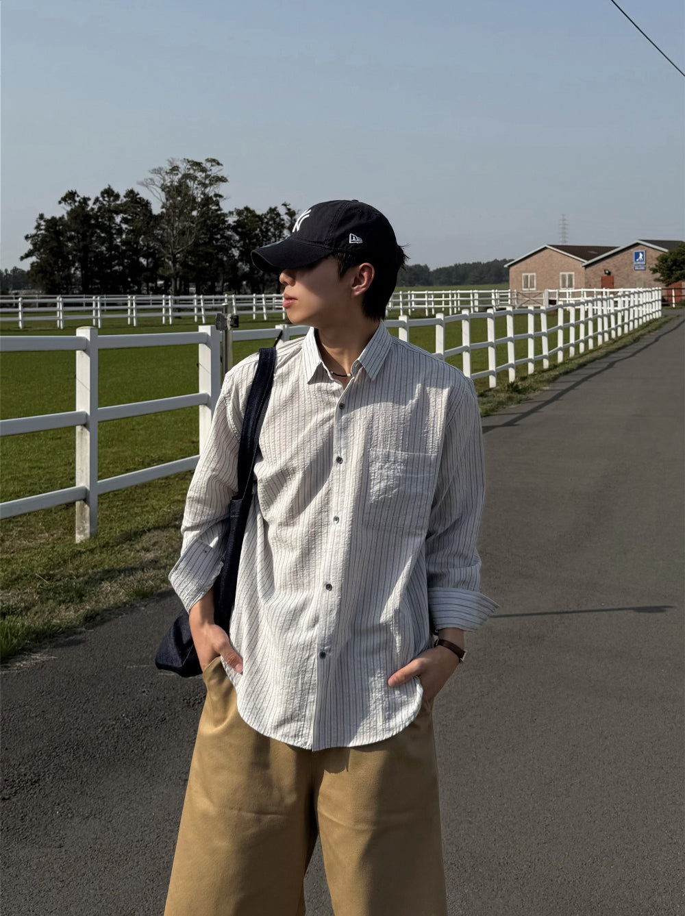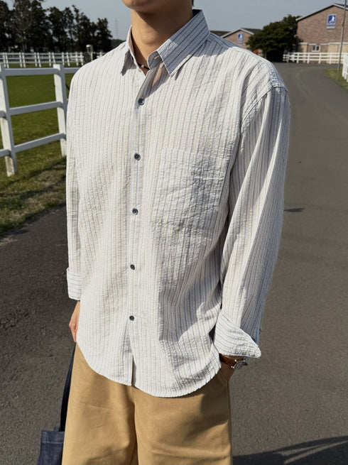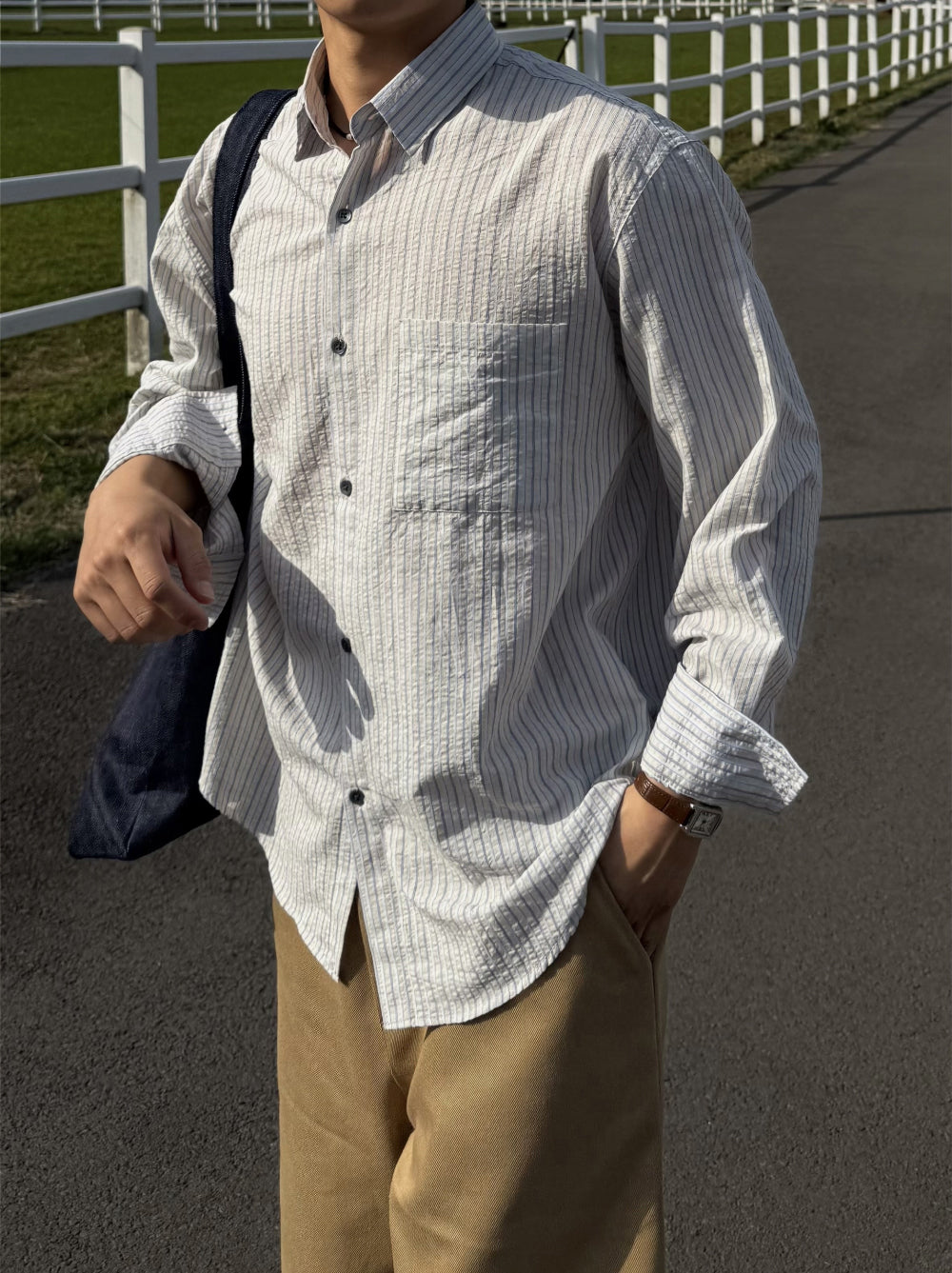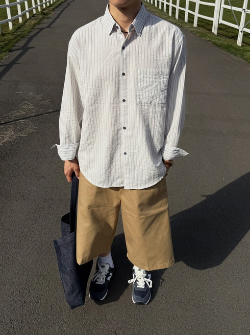 四季皆可穿!泡泡棉短款條紋恤衫|3色入