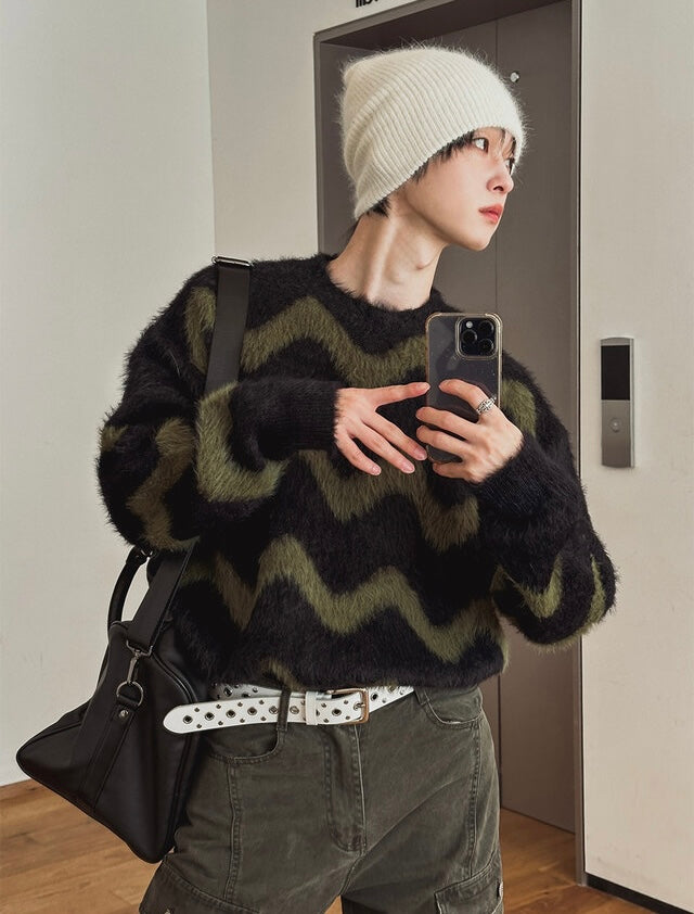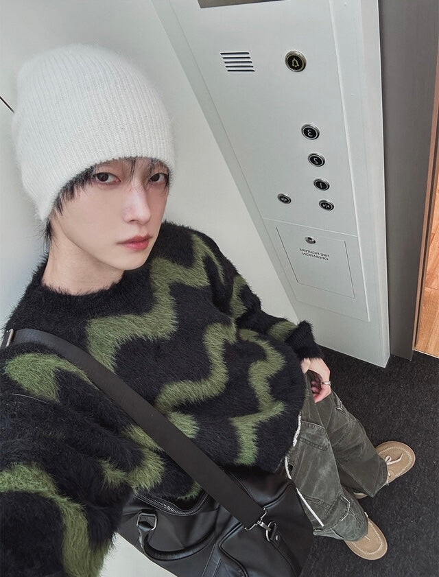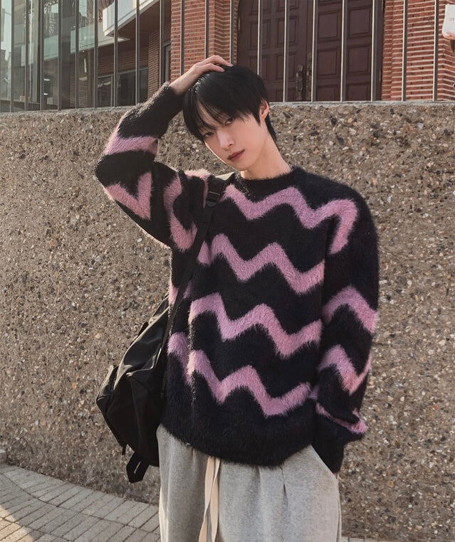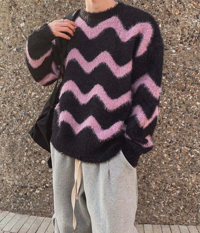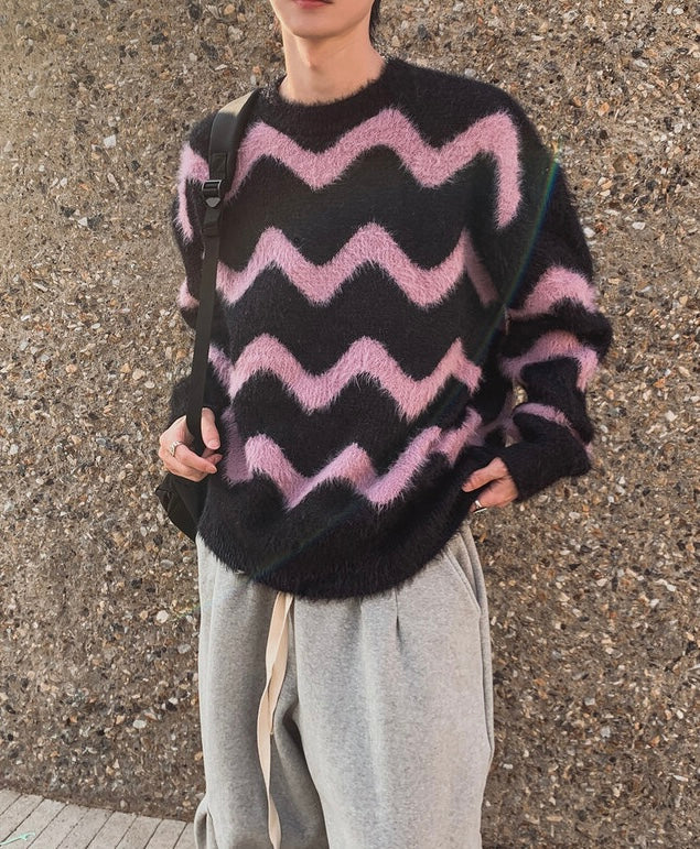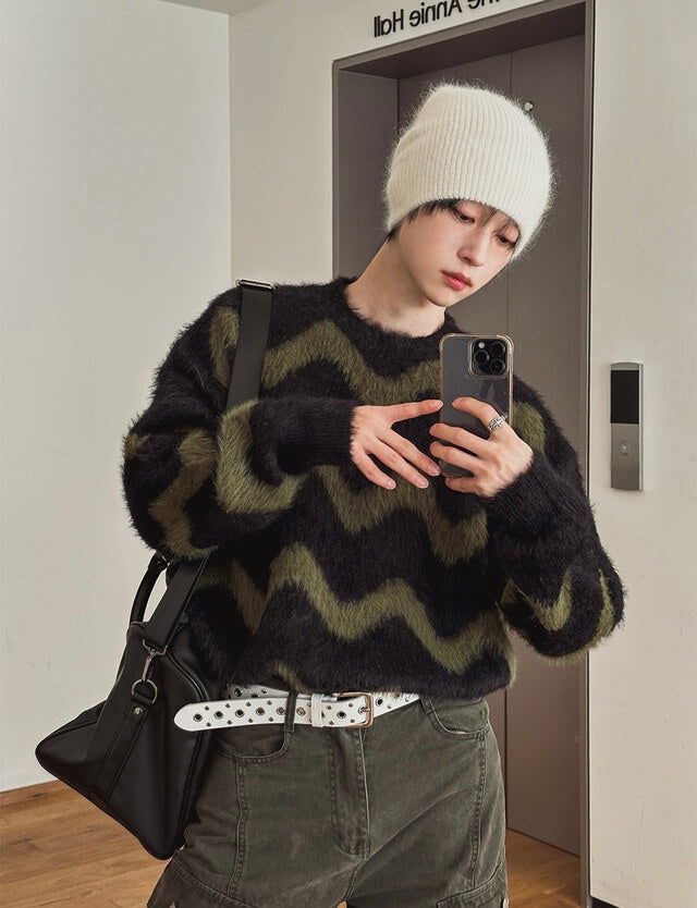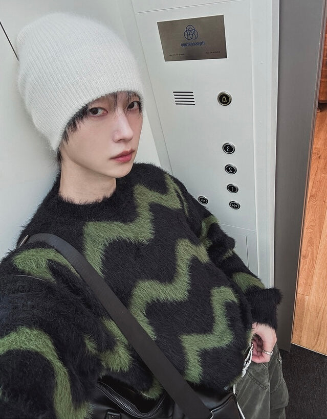 毛絮感!波浪紋寬鬆針織衫|4色入