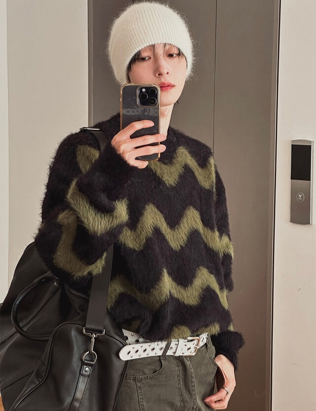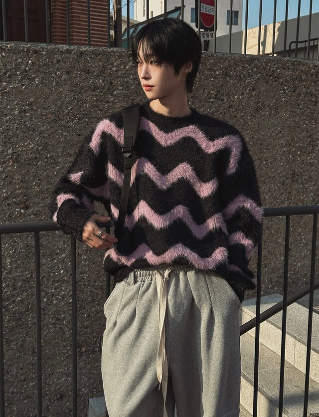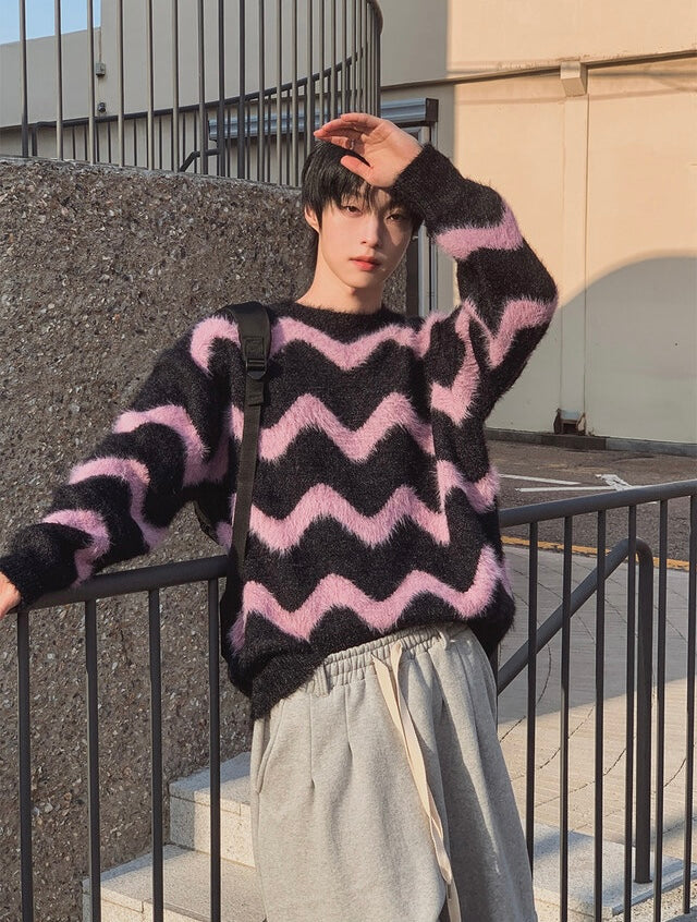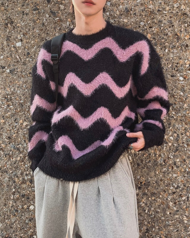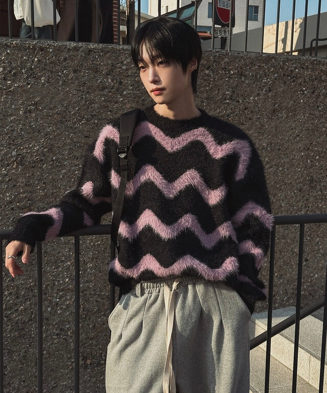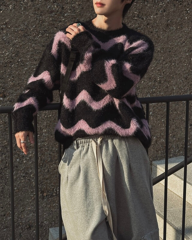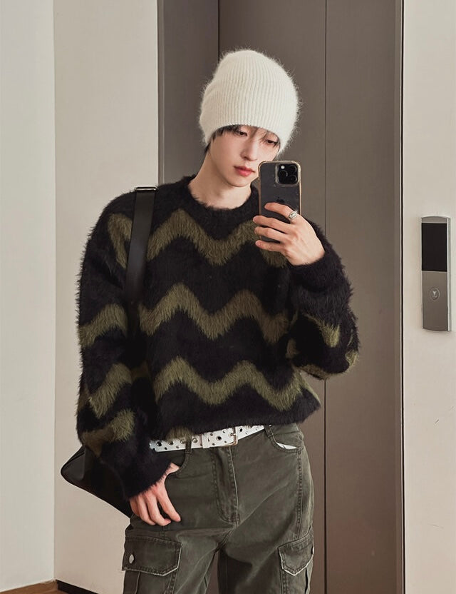 毛絮感!波浪紋寬鬆針織衫|4色入