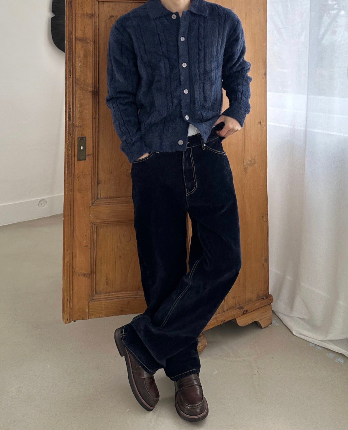 - 簡約的領口設計與半寬鬆剪裁,即使單穿針織衫也能營造整潔印象