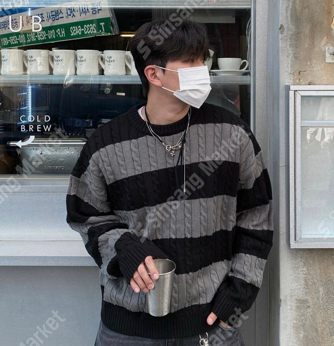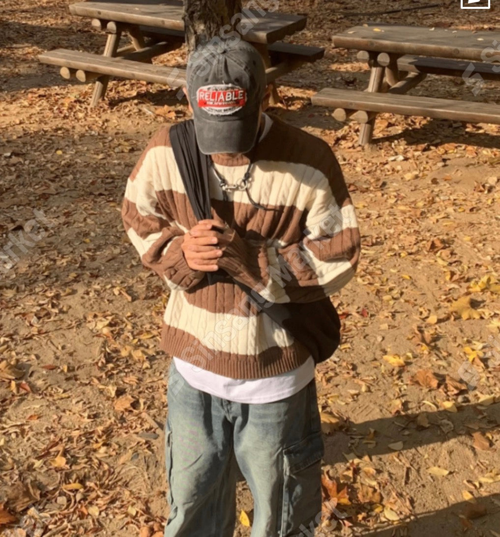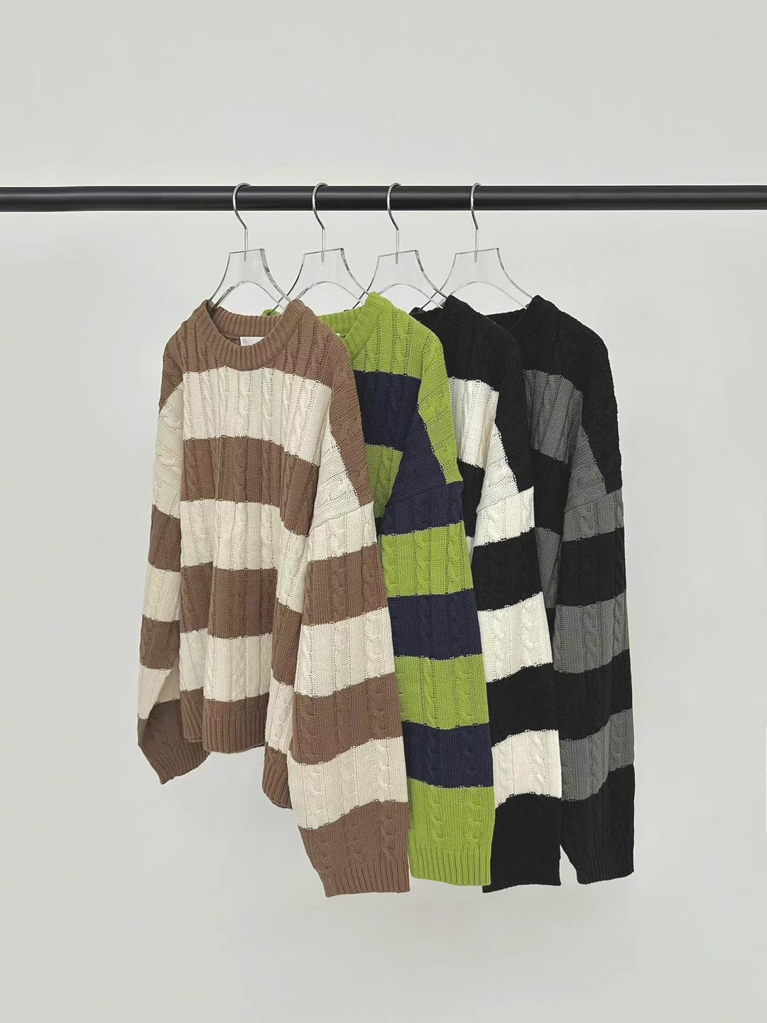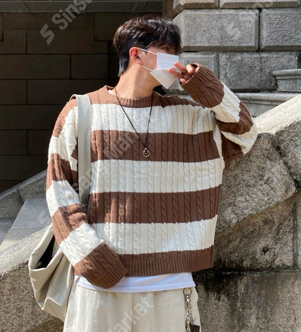 麻花紋拼色間條針織衫