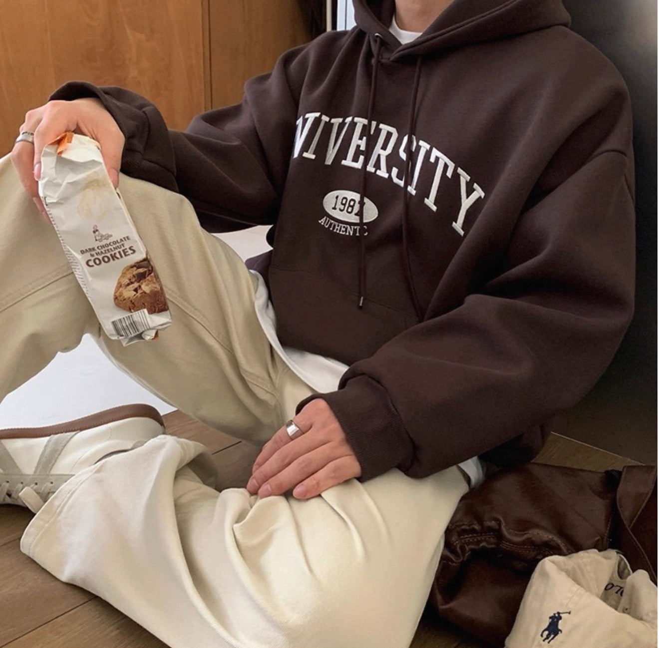 [重磅純棉]University 刺繡連帽衛衣-GREY