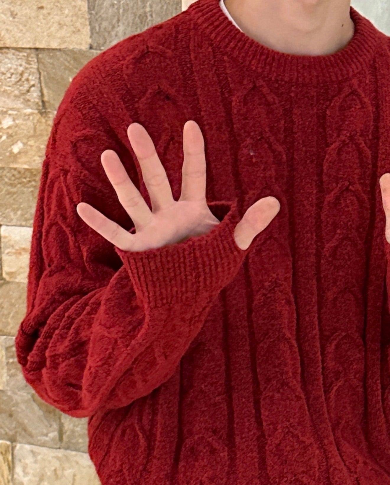簡約的圓領設計搭配繩結圖案,低調增添亮點;手袖式設計能覆蓋手腕,溫暖守護。