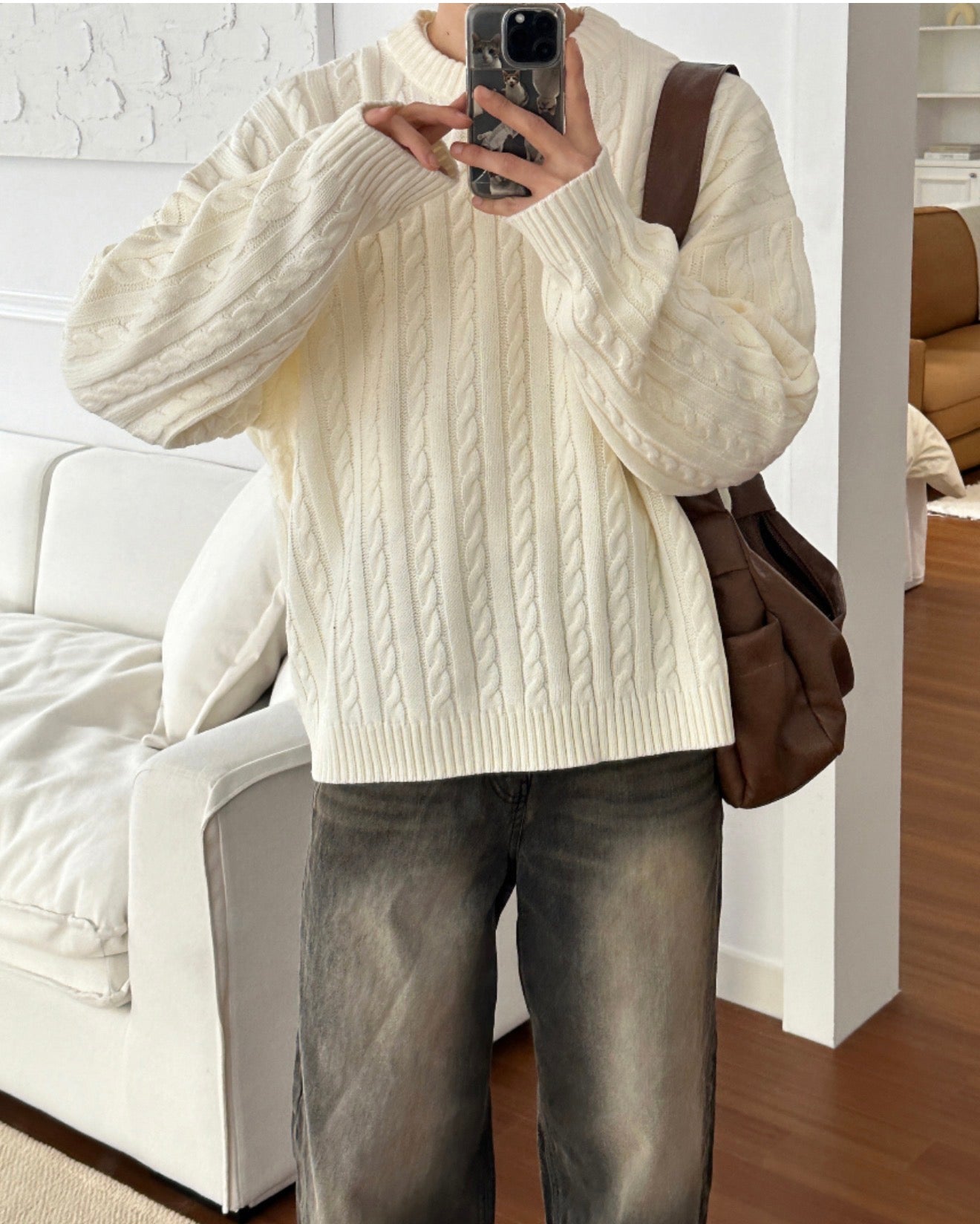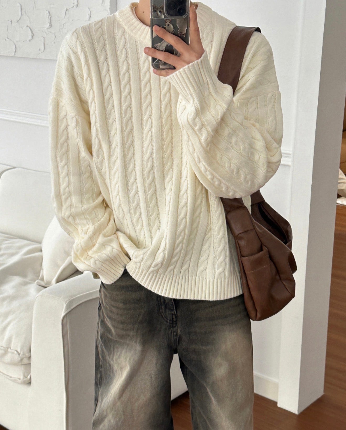 - 採用長袖設計與寬鬆剪裁,適合春、秋季穿著的針織衫