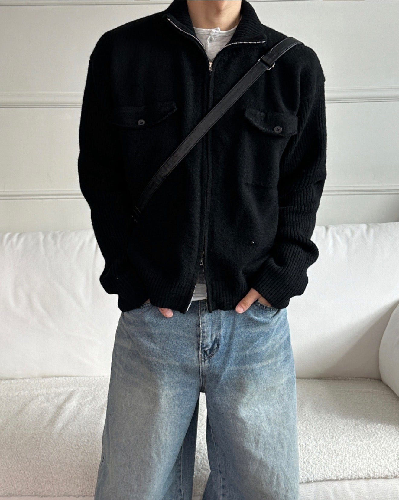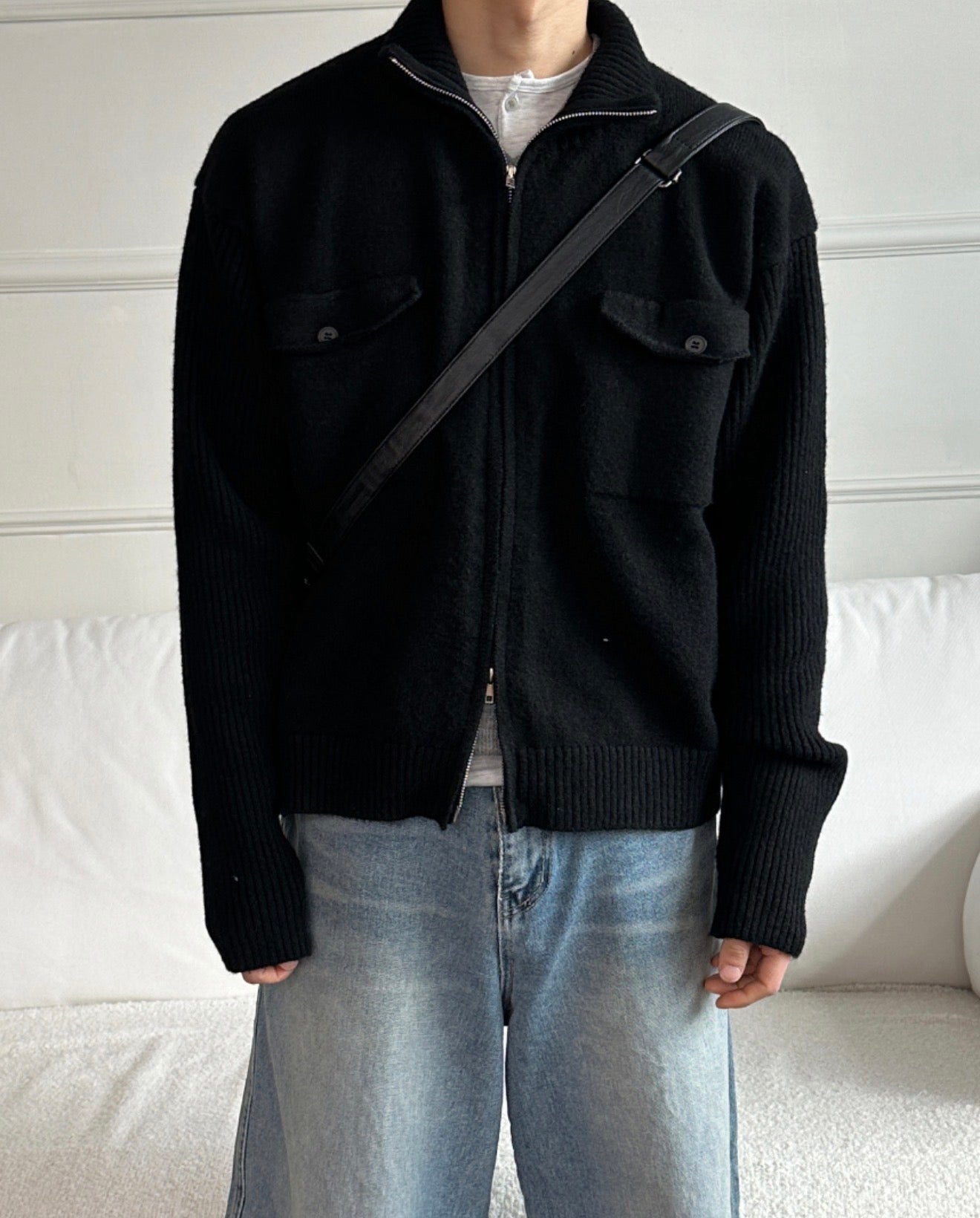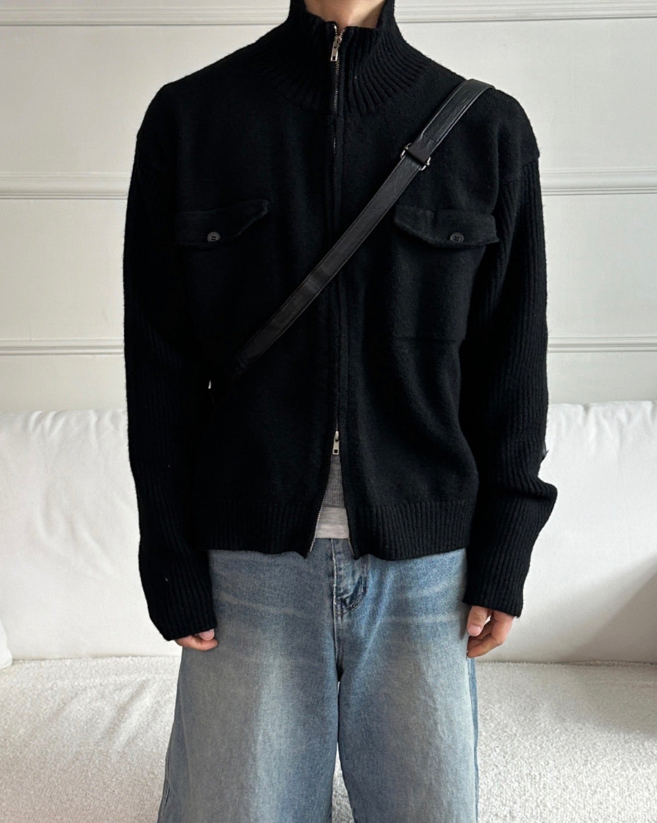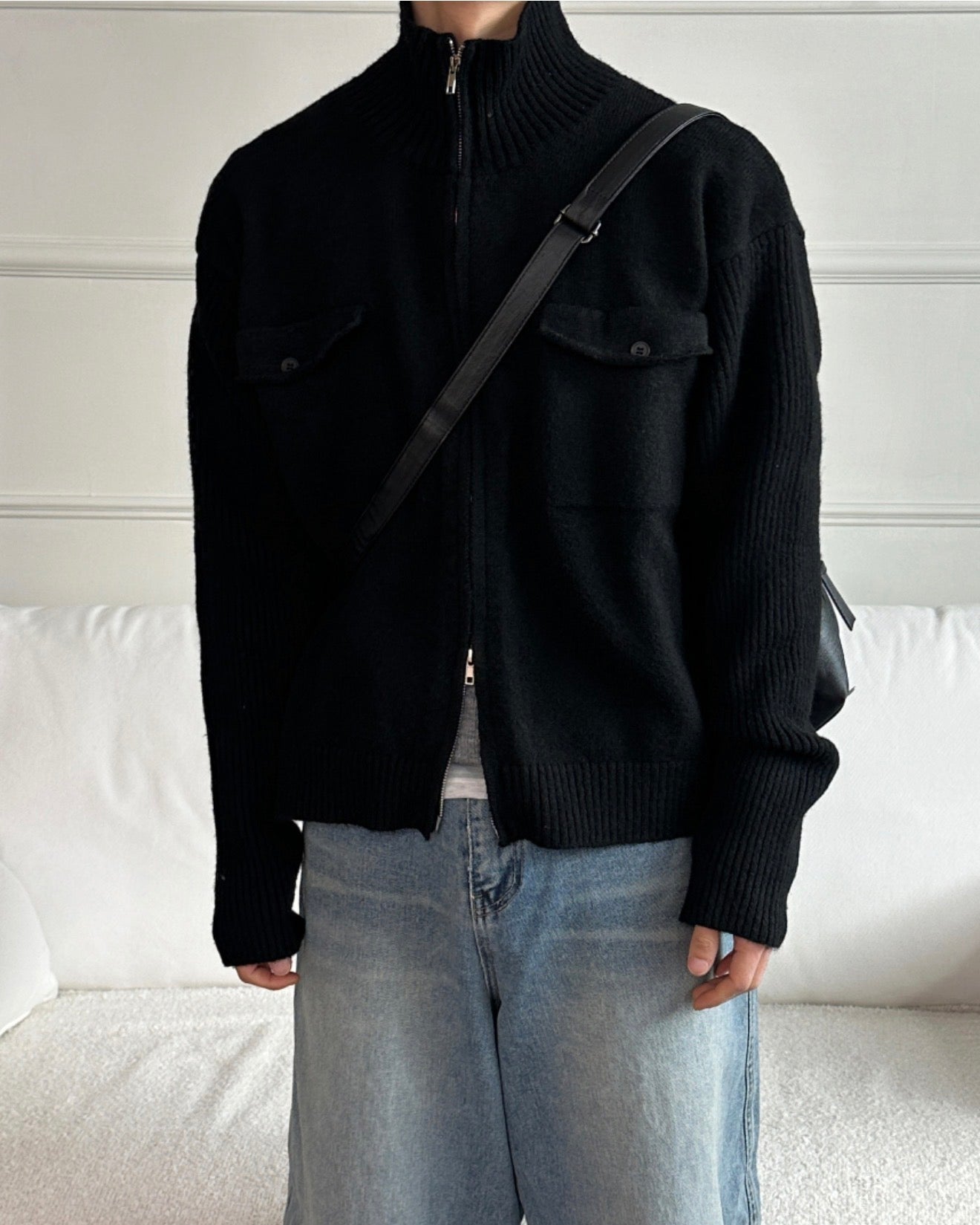 半短版高領拉鍊開胸針織衫|2色入