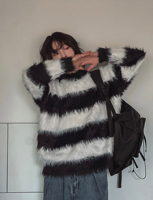 質量超好!簡約橫間馬海毛針織冷衫|2色入