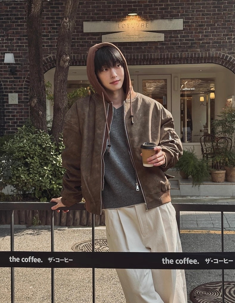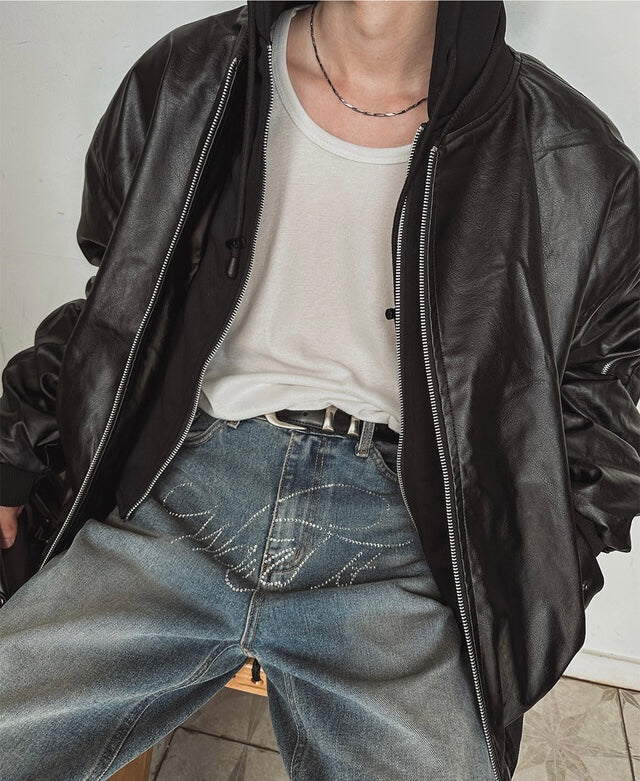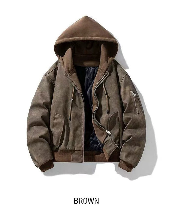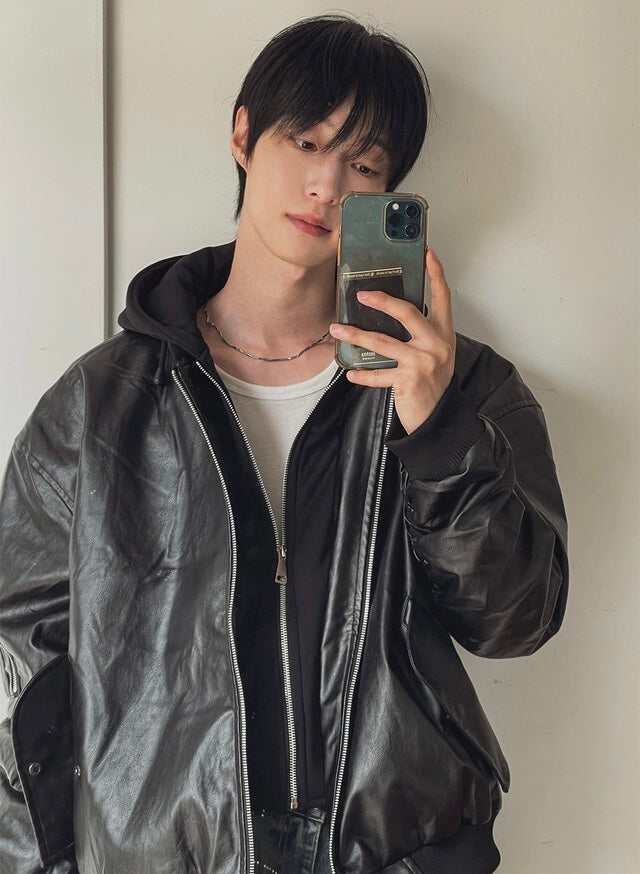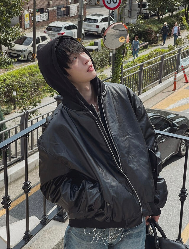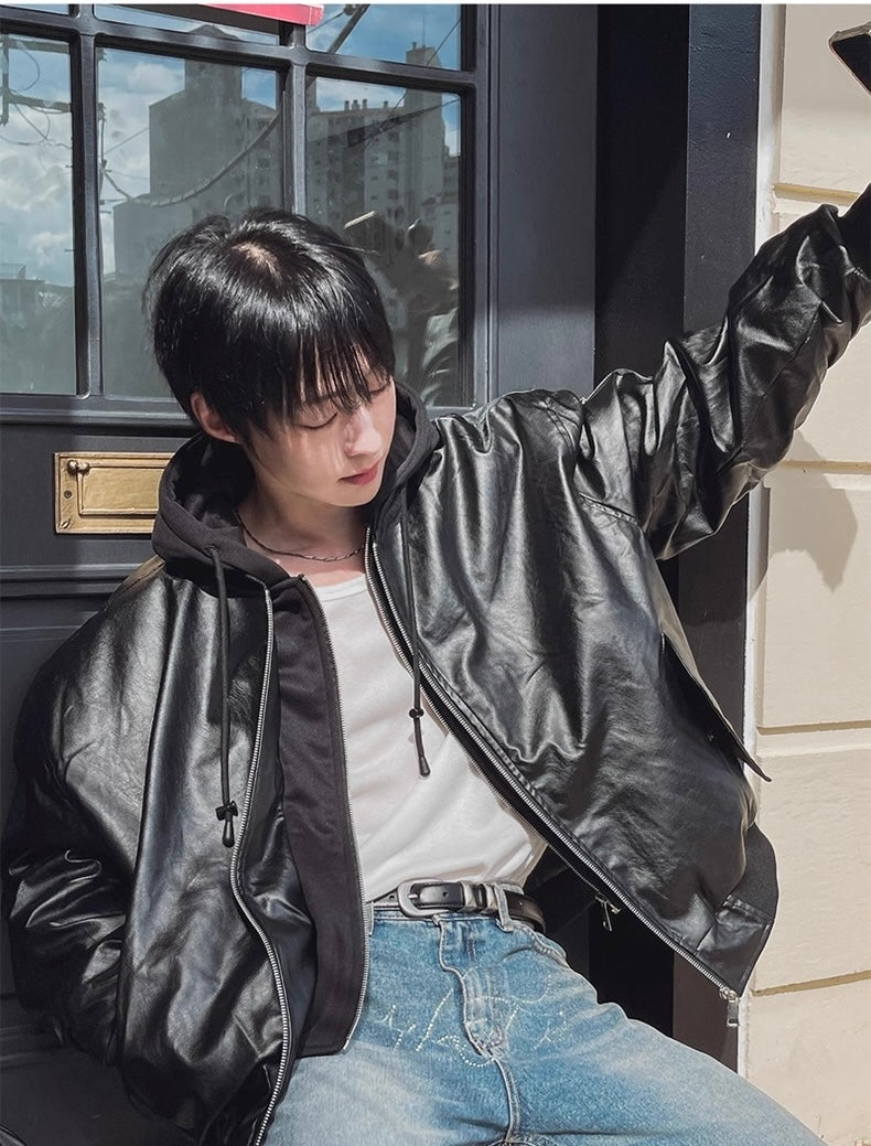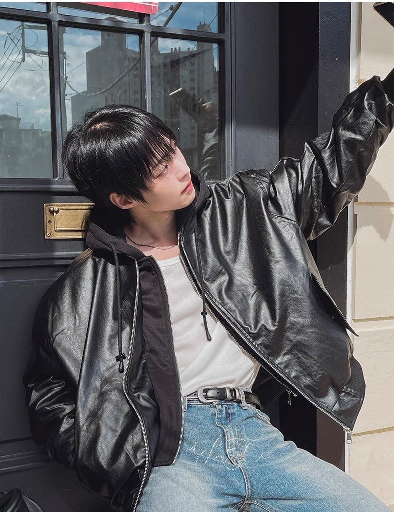 🔥店主推薦!型格假兩件連帽分層皮褸|2色入