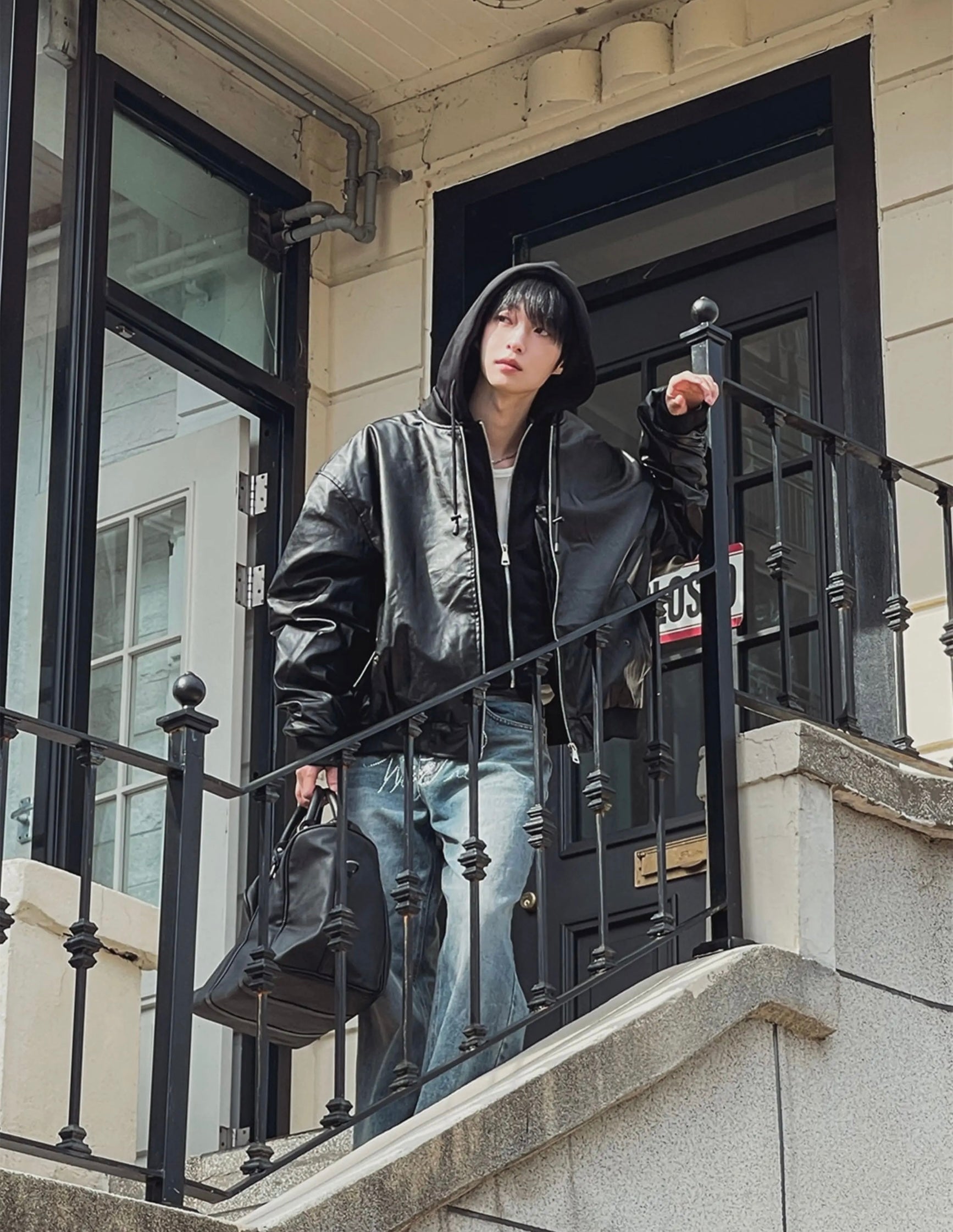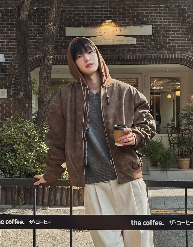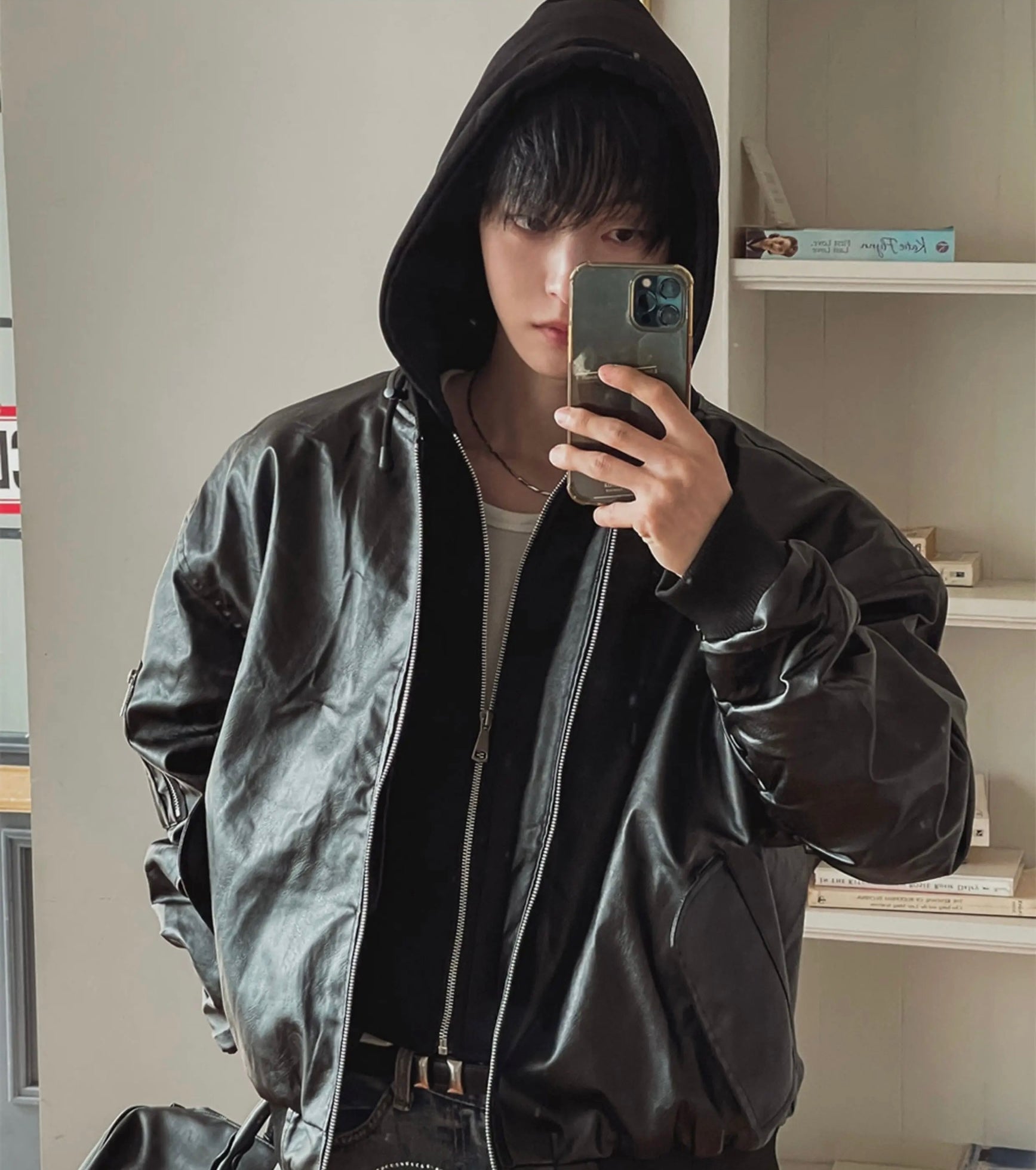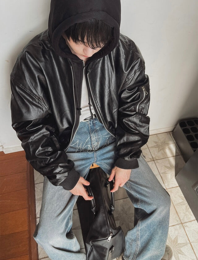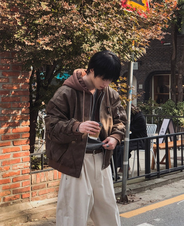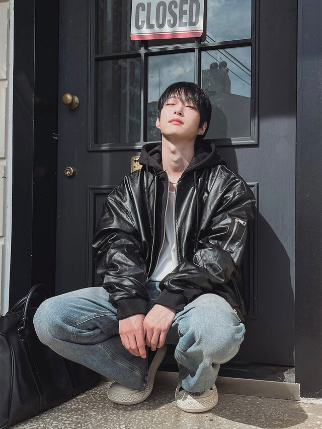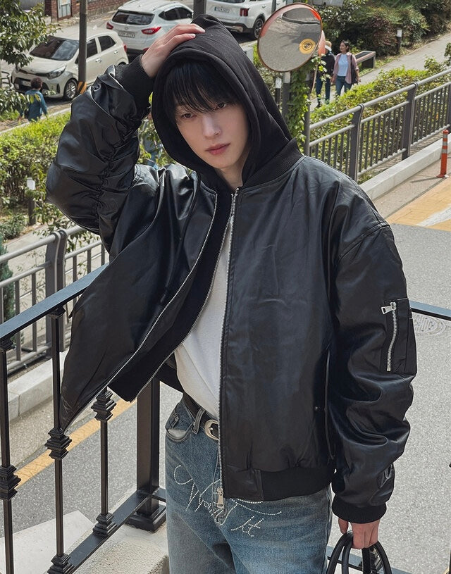 🔥店主推薦!型格假兩件連帽分層皮褸|2色入