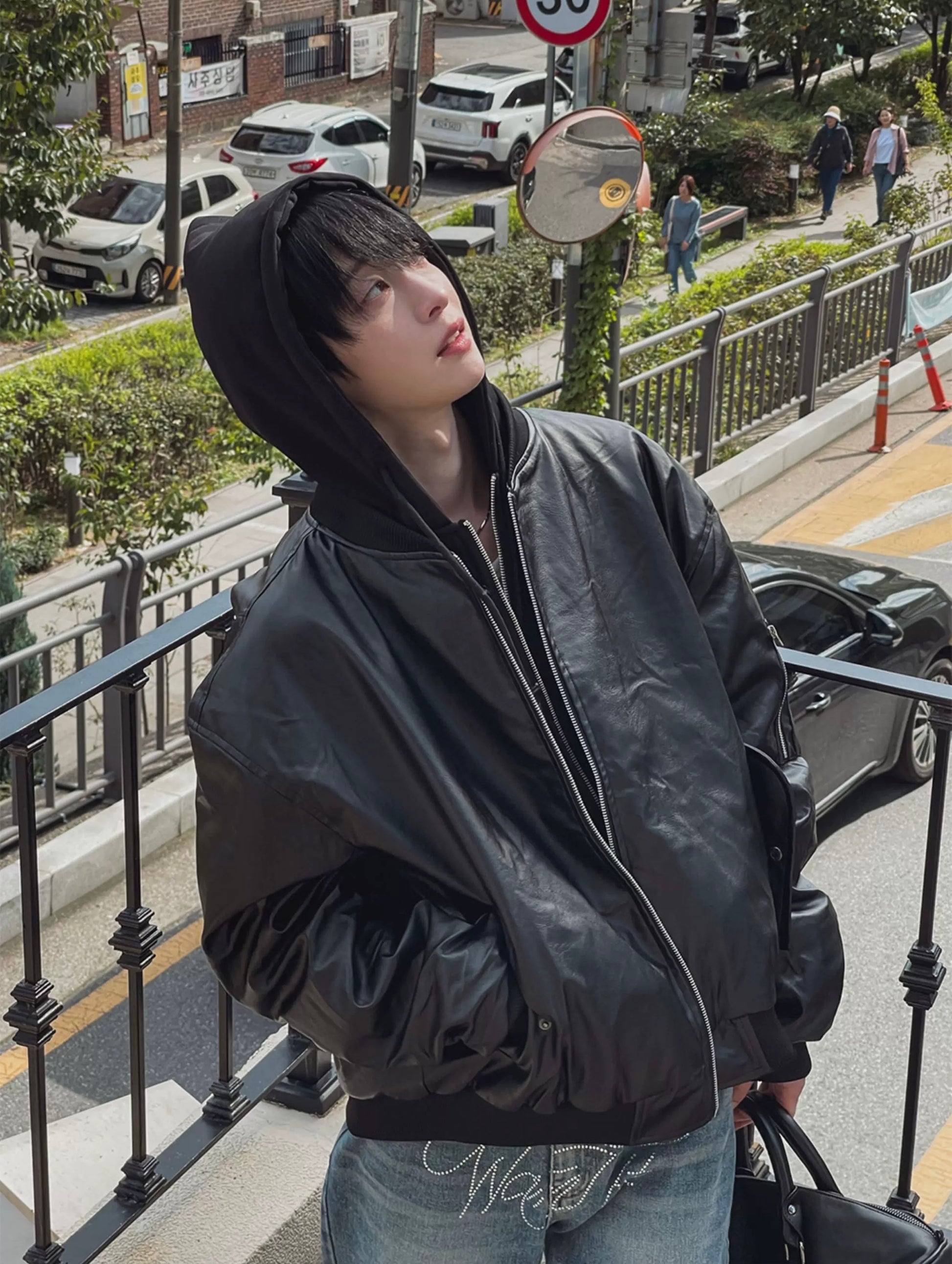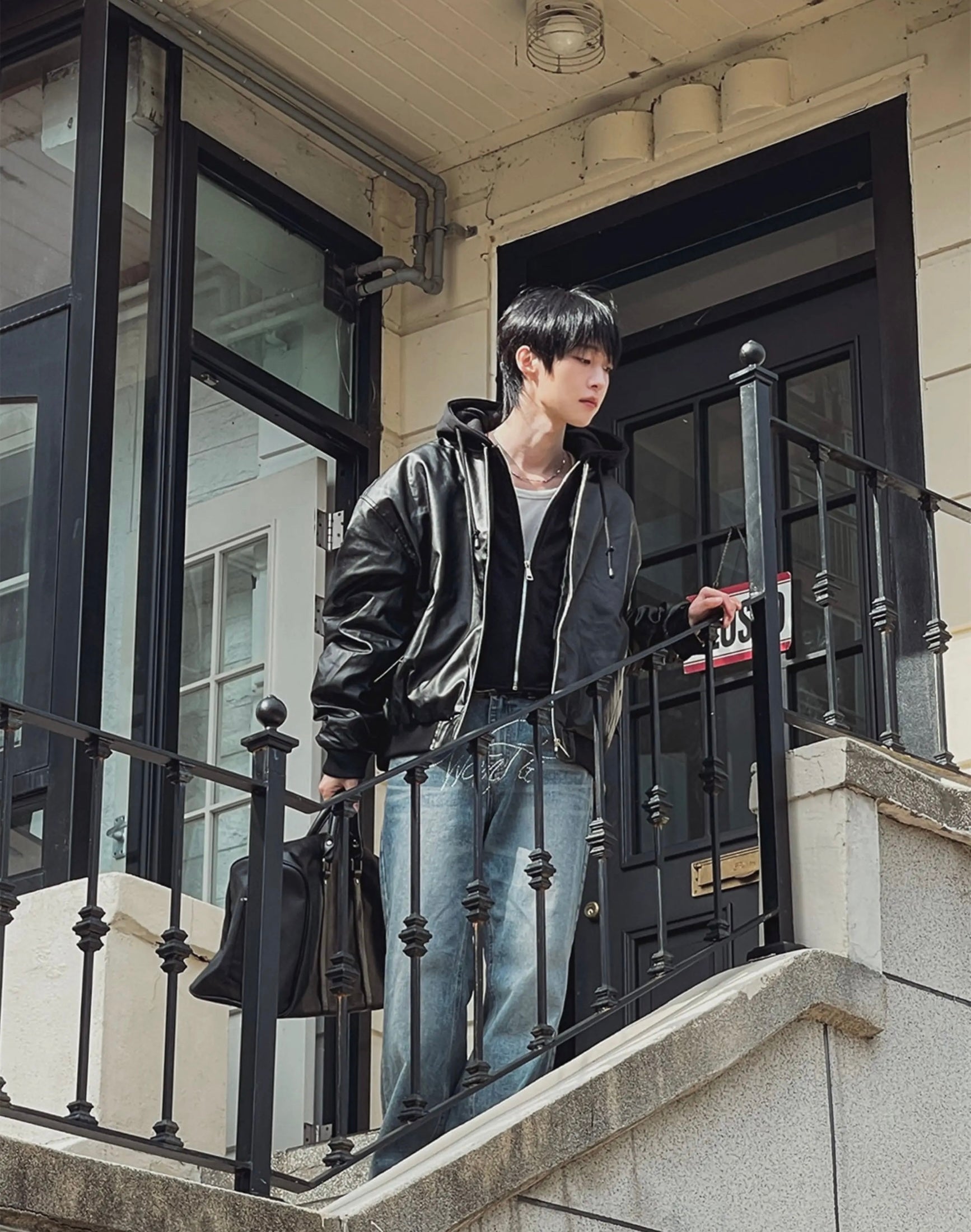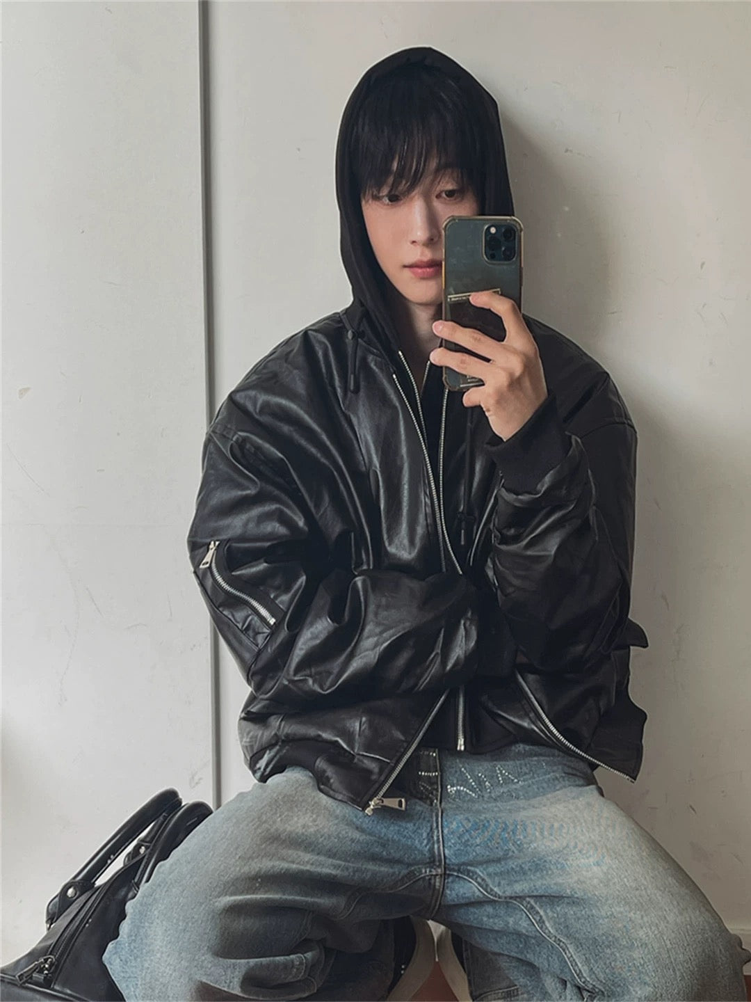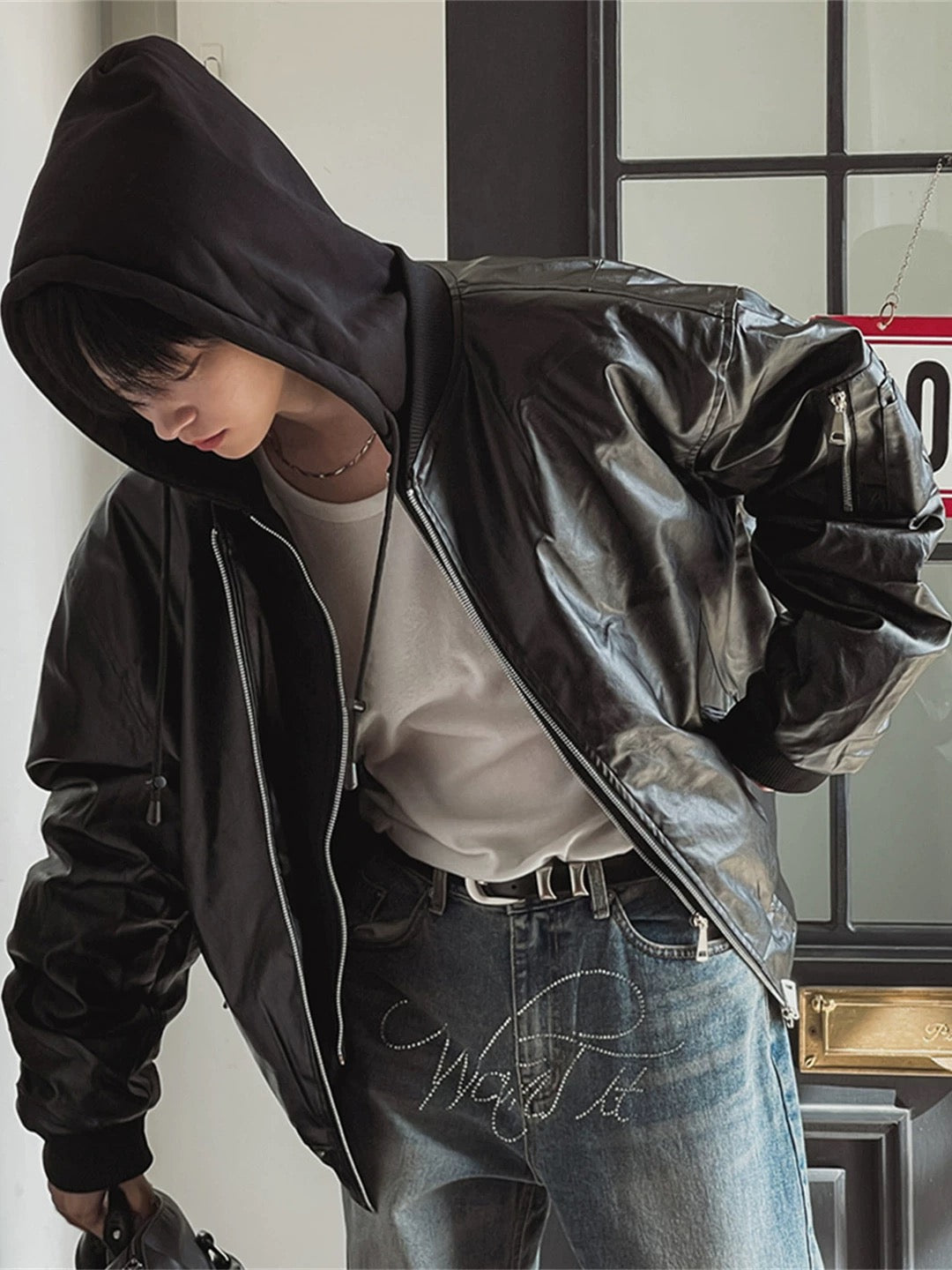🔥店主推薦!型格假兩件連帽分層皮褸|2色入